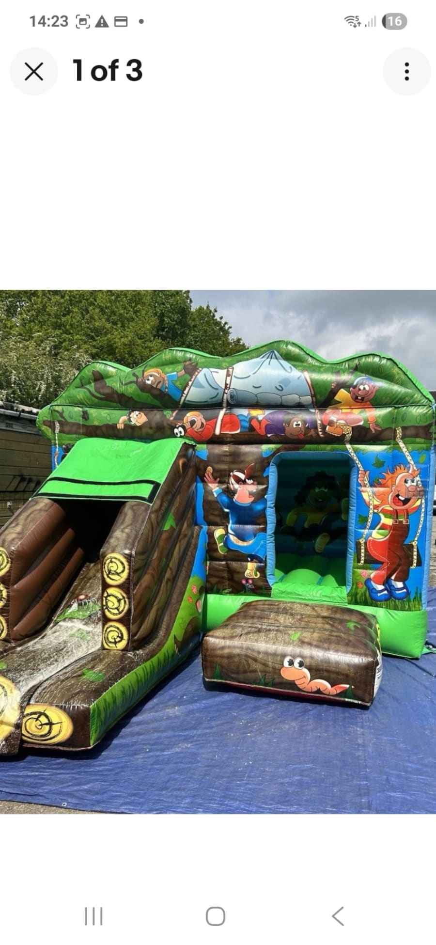 The Tree House Castle comes with a front slide making it more accessible to smaller gardens whilst keeping the same size jumping area of a side slide castle. The castle has a treehouse style theme to it.