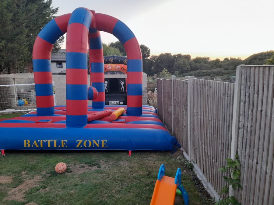 The Battle Zone is a duel activity inflatable it doubles as a gladiator arena and wrecking ball game it is a great addition to any event and mostly suited to adults and teens.
