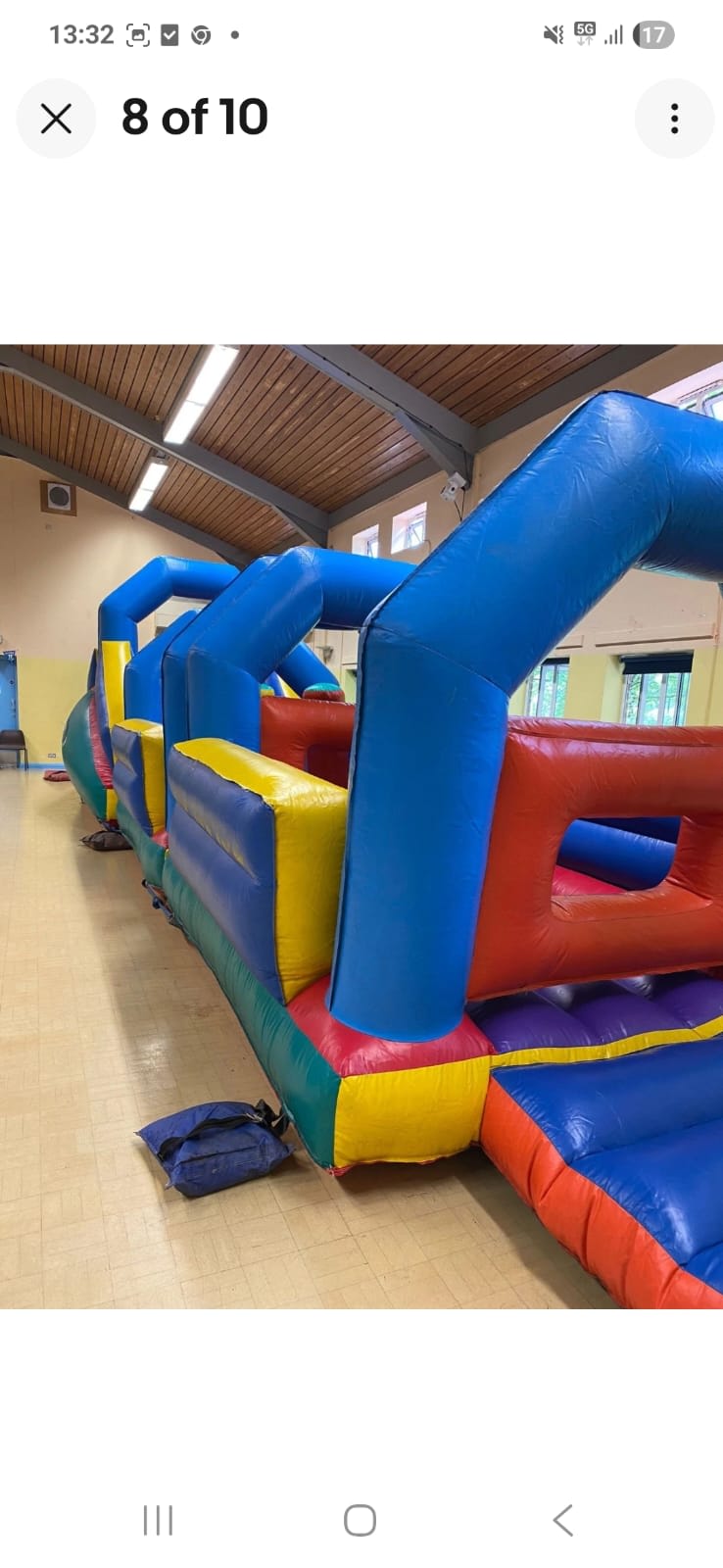 This 45 ft Assault course comes in 3 parts and is fun for children of all ages coloures purple yelliw and green.