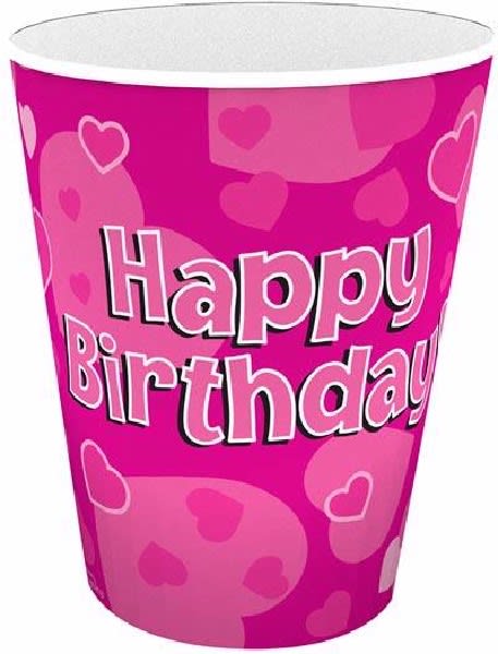 Why not add the Pink Happy Birthday Cups to your party and make it a more complete setup. Each pack contains 8 cups. Feel free to contact a friendly member of staff on