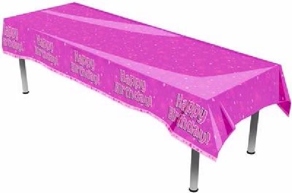 Pink Happy Birthday Plastic Table Cover